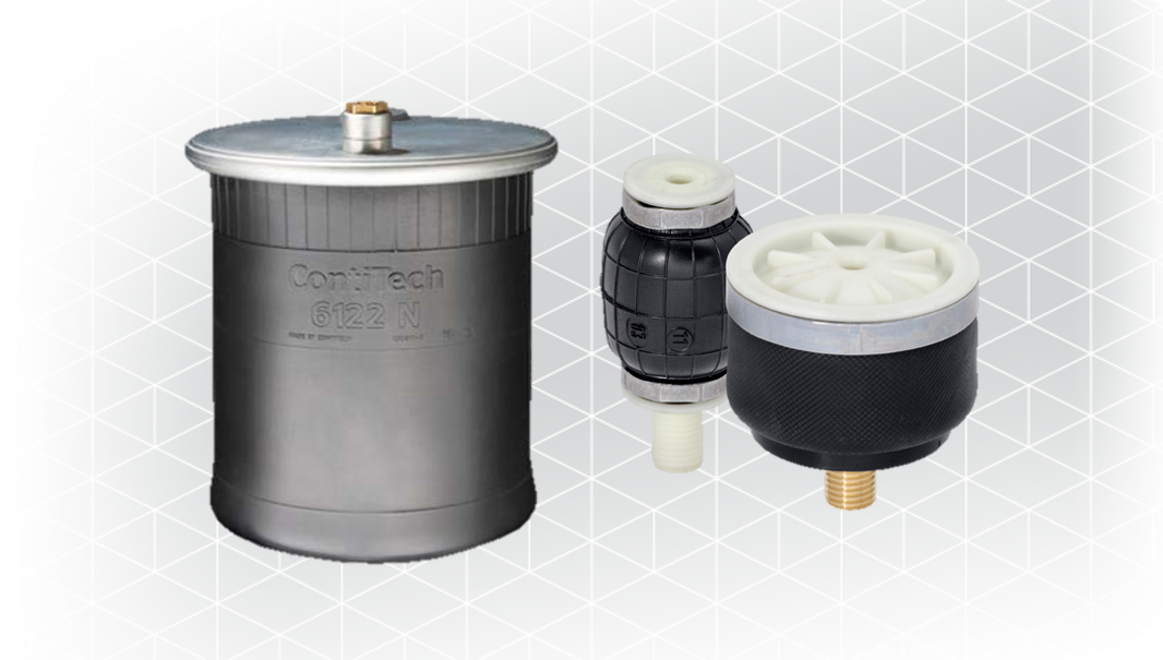 Continental Air Springs, when used with an air actuator, can offer added value as compared with standard steel spring bearings or hydraulic cylinders. These common parts can cause disruptive vibrations, which are reduced when Continental’s Air Springs are used, even under the toughest conditions.