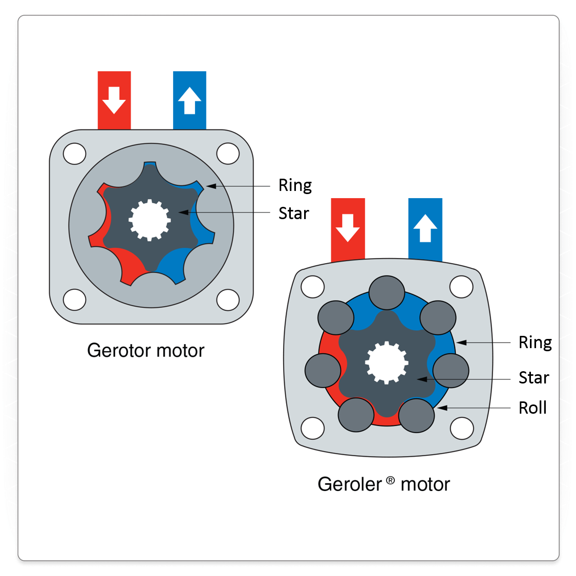 The J, H, S, T-motors, and T-brakes feature hydrodynamic journal bearings to distribute pressurized fluid into the Geroler gear set for a consistent performance over a long period of time.